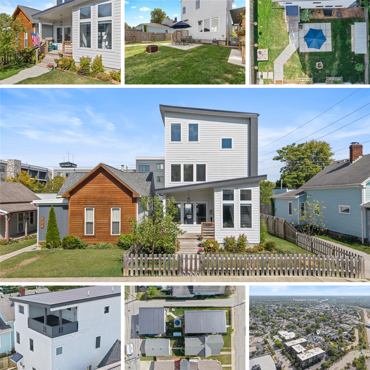 Contemporary gem in one of Indy's hottest neighborhoods! Stunning TKW-built hm offering sleek modern design, thoughtful layout & incredible versatility-including a Fully Finished Carriage House! Located steps from Fountain Square's dining, nightlife & vibrant arts scene, this property delivers urban living at its finest! Inside the main home, you'll find Wide-Plank Hdwd Floors + sun-drenched living spaces that blend style w/functionality. Gourmet Kit is a chef's dream with Commercial-grade Bertazzoni Appls, Quartz Counters w/Waterfall Island, Tile Backsplash + Brkfst Bar! You'll love the Coffee/Wine Bar tucked away in the Butler's Pantry. Owner's Retreat w/Spa-like BA w/Custom Walk-In Shower + Soaking Tub. Third-level Bonus Rm w/Wet Bar opens to Rooftop Deck w/stunning Indy skyline views-perfect for entertaining or morning coffee. Full Bsmt w/Plumbing Rough-In + Egress Windows adds even more flexibility. Detached Carriage House offers a BD, Full BA + Kit & Laundry-ideal for generating rental income, hosting guests or creating a priv hm office/studio. From the charming covered Front Porch to the Fncd Yard with spacious Patio, raised Garden Beds & Built-In Grill, every outdoor space invites relaxation & enjoyment.
